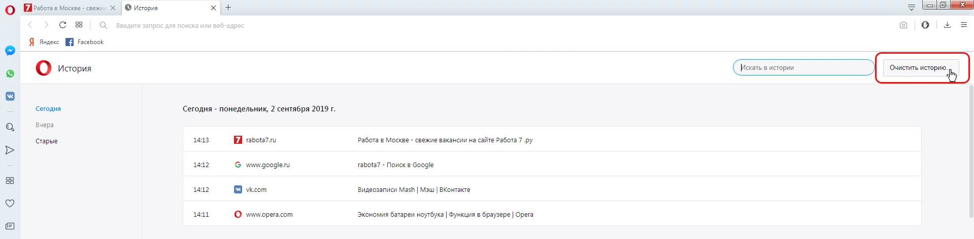 1. Откройте Опера, нажмите на кнопку "Меню" или воспользуйтесь сочетанием клавиш Ctrl + Shift + Del;
